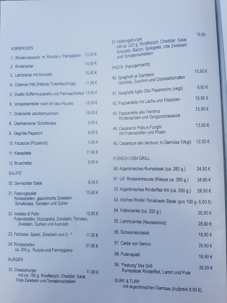 Welcome to the Restaurant Festungslounge Steakhouse & Weinbar, an exquisite dining experience nestled in the heart of Germersheim, Germany. Located at An Fronte Diez 2, this gem combines the warmth of a classic steakhouse with a unique fortress-inspired ambiance. Diners rave about the freshly prepared and well-seasoned dishes, from expertly grilled steaks to delightful desserts crafted to perfection. Guests have lauded the exceptional service and charming atmosphere, with many appreciating the staff's multilingual capabilities. Specialties like the beautifully presented tagliata di manzo and irresistible cocktails enhance the culinary journey. While some diners noted minor service hiccups, the overall sentiment remains positive, highlighting the restaurant as a prime destination for quality meals. Whether you're celebrating a special occasion or enjoying a casual night out, Festungslounge promises a memorable dining experience that beckons for a return visit.